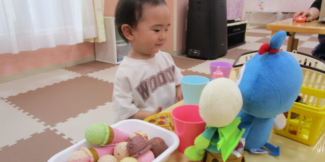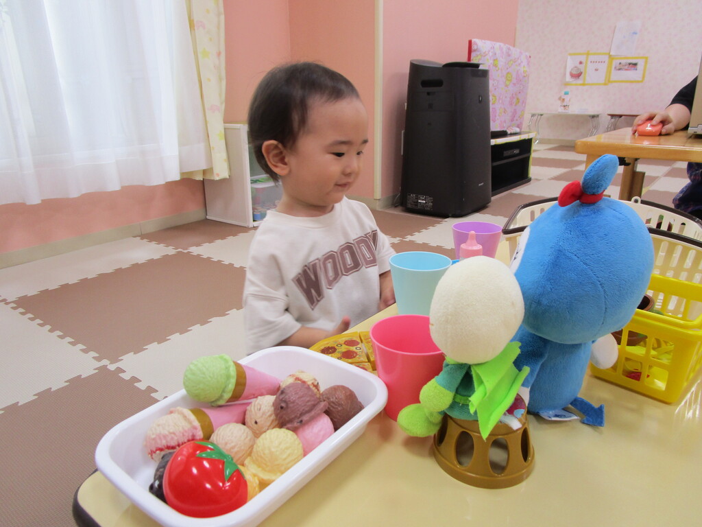 食べ物とお人形を並べてパーティを開いていましたよ。 みんなの食事を用意してくれました。