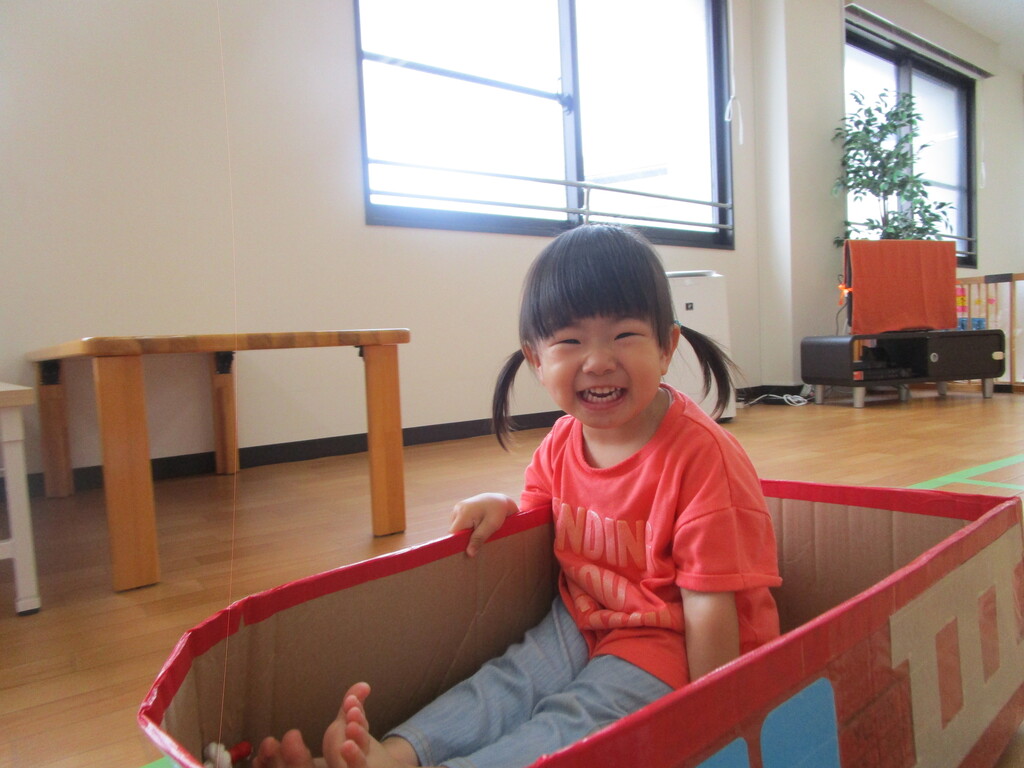 電車に乗って線路の上を 走って遊びました! 「もう1回!」とリクエストが 止まりませんでした♪