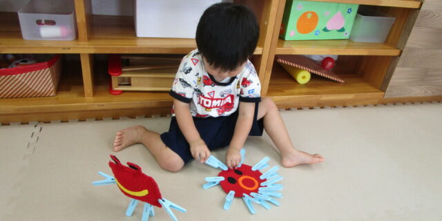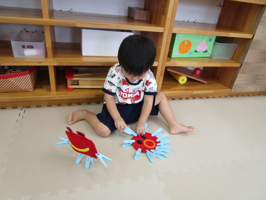 指先を上手に使って カニやタコの完成です! 色々な所につけて 集中して遊んでいましたよ♪