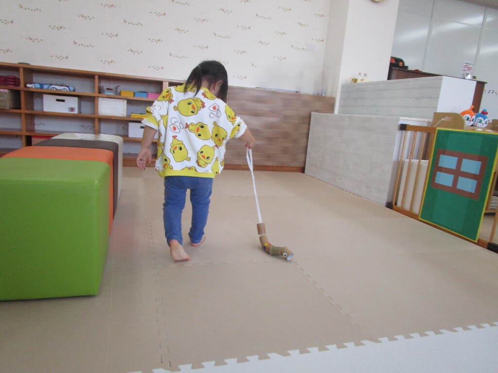 トイレットペーパーの芯を使って ヘビを作りました! ヘビに模様をつけ、 お散歩をして楽しみました♪